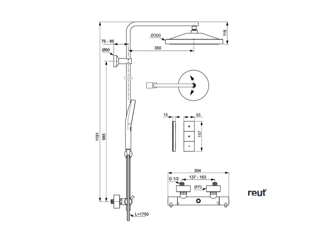 Ideal Standard Ceratherm T125+ Sprchový set s termostatom, priemer 30 cm, 3 prúdy, magnetic grey A7689A5