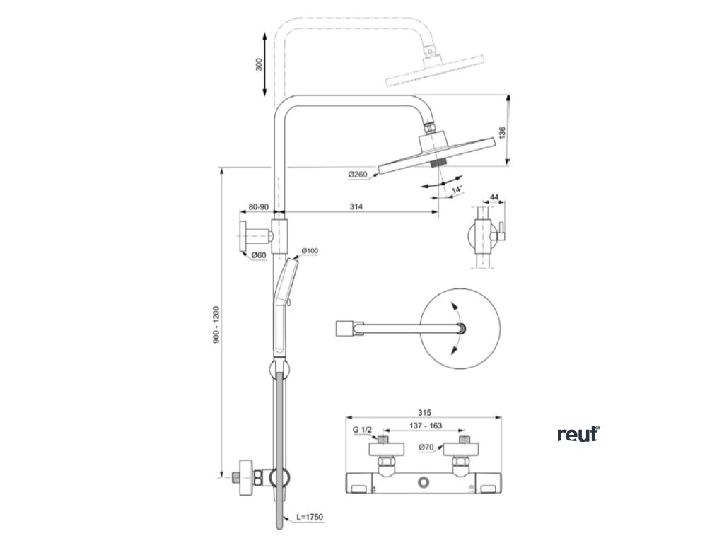 Ideal Standard Ceratherm T25+ Sprchový set s termostatom, priemer 26 cm, 2 prúdy, hodvábna čierna A8497XG