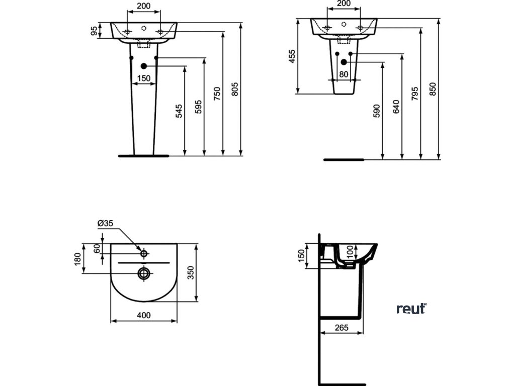 Ideal Standard Connect Air Umývadielko, 40x35 cm, s prepadom, otvor na batériu, biela E070101