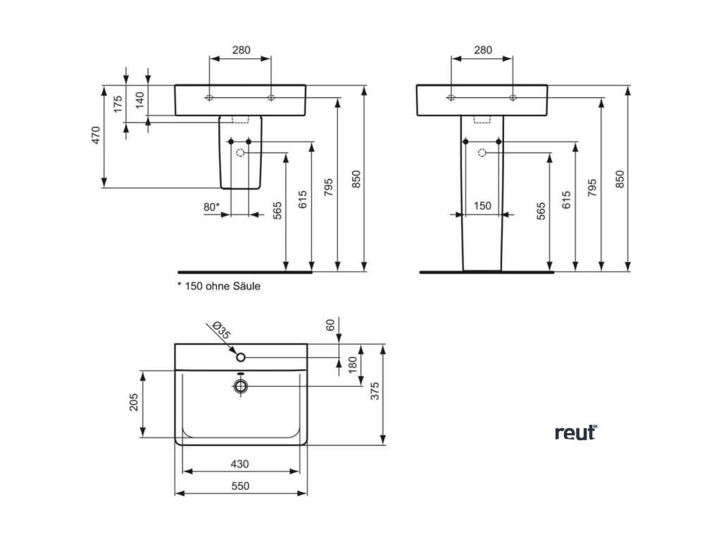 Ideal Standard Connect Space Umývadlo Cube, 55x38x18 cm, s prepadom, otvor na batériu, biela E714001