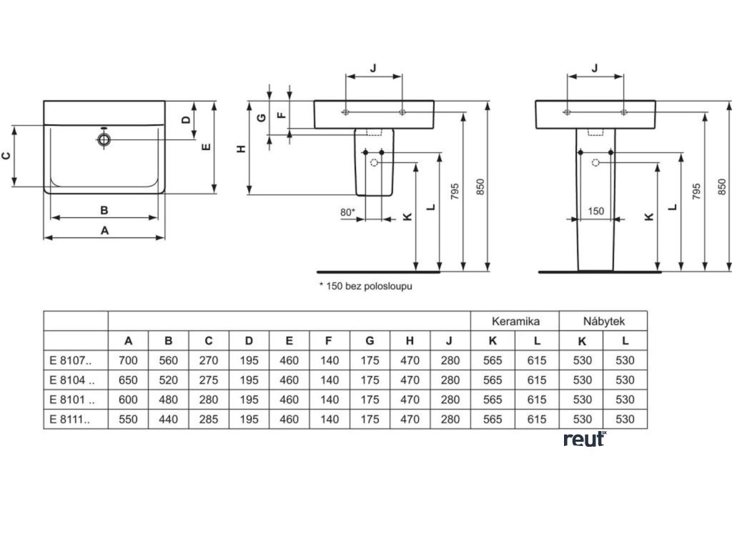Ideal Standard Connect Umývadlo 55cm x18cm x46 cm (bez otvoru na batériu, s prepadom), biela E811101