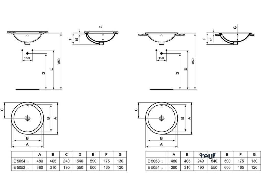 Ideal Standard Connect Umývadlo zápustné, 38 cm, s prepadom, biela E505101