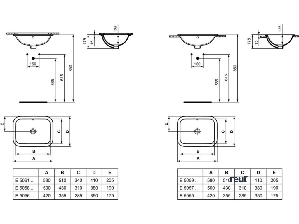 Ideal Standard Connect Umývadlo zápustné, 50x38 cm, s prepadom, biela E505701