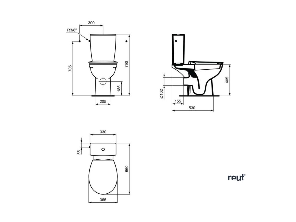 Ideal Standard Eurovit WC kombi s doskou SoftClose, zadný odpad, biela W328501