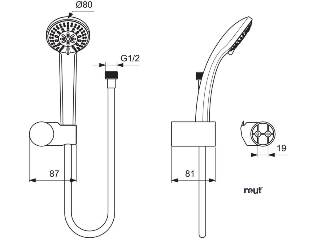 Ideal Standard Idealrain Set sprchovej hlavice 80, 3 prúdy, držiaka a hadice, chróm B9507AA