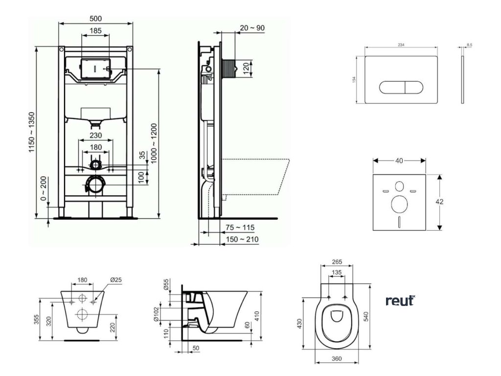 Ideal Standard ProSys Set predstenovej inštalácie, klozetu a sedadla Connect Air, tlačidla Oleas M1, Aquablade, SoftClose, chróm ProSys120M SP24