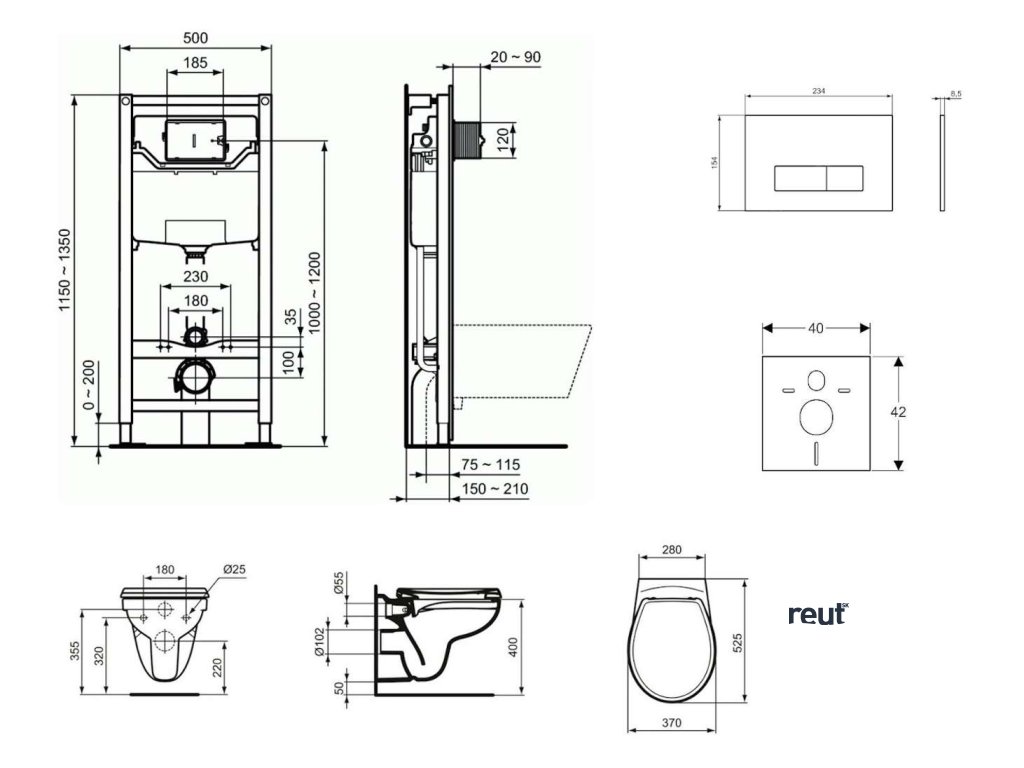 Ideal Standard ProSys Set predstenovej inštalácie, klozetu a sedadla Eurovit, tlačidla Oleas M2, Rimless, SoftClose, biela ProSys120M SP49