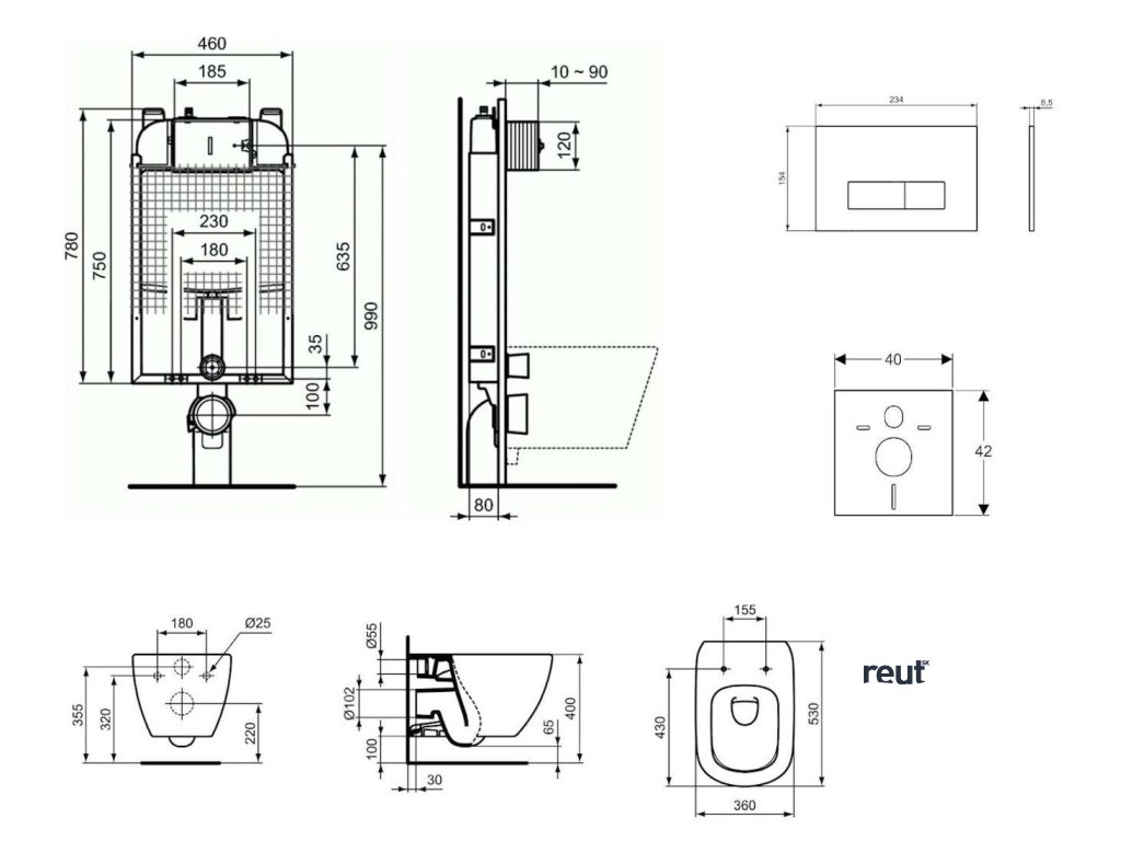 Ideal Standard ProSys Set predstenovej inštalácie, klozetu a sedadla Tesi, tlačidla Oleas M2, Aquablade, SoftClose, chróm ProSys80M SP75
