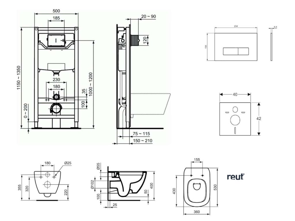 Ideal Standard ProSys Set predstenovej inštalácie, klozetu a sedadla Tesi, tlačidla Oleas M2, Rimless, SoftClose, chróm mat ProSys120M SP8