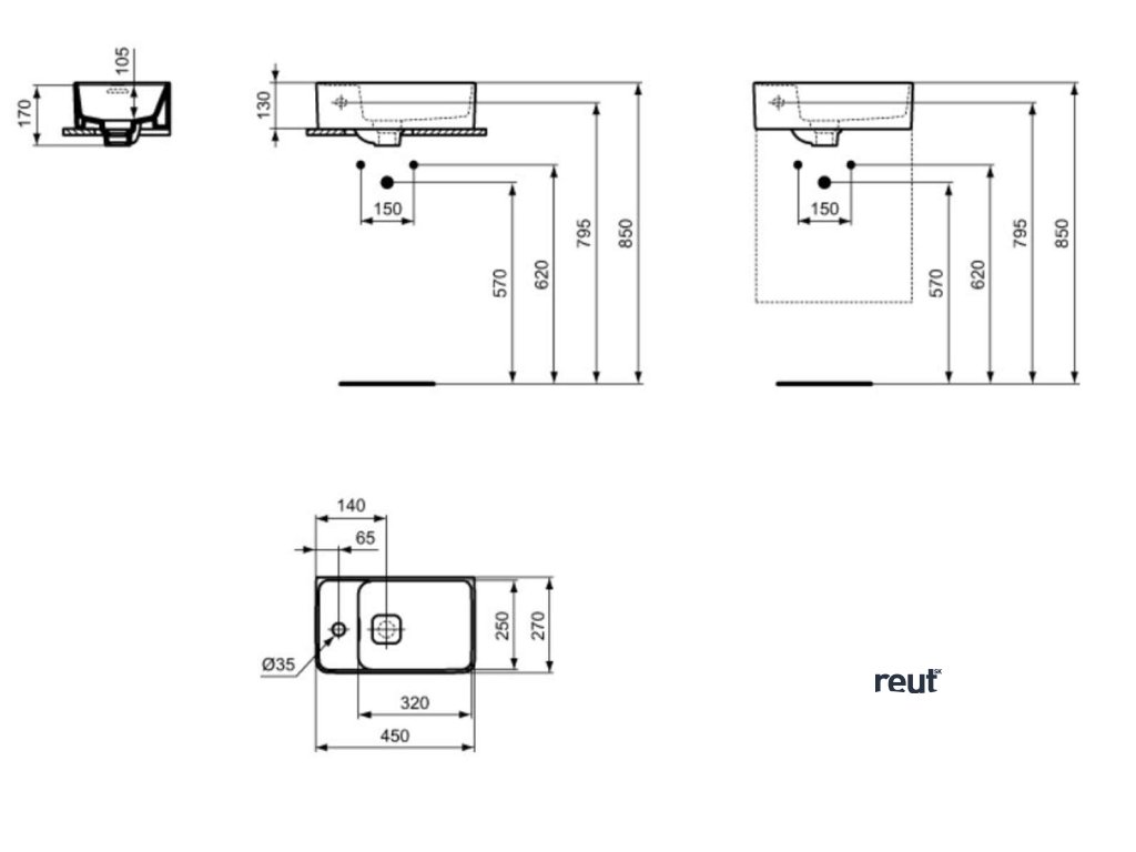 Ideal Standard Strada II Umývadielko, 45x27 cm, s prepadom, otvor na batériu vľavo, biela T299501