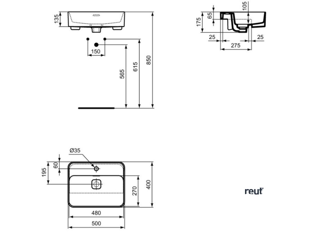 Ideal Standard Strada II Umývadlo polozápustné, 50x40 cm, s Ideal Plus, biela T2993MA