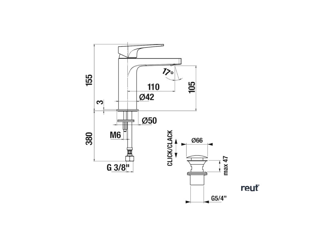 Jika Cubito-N Umývadlová batéria s výpustom Click-Clack, chróm H3111X10041141