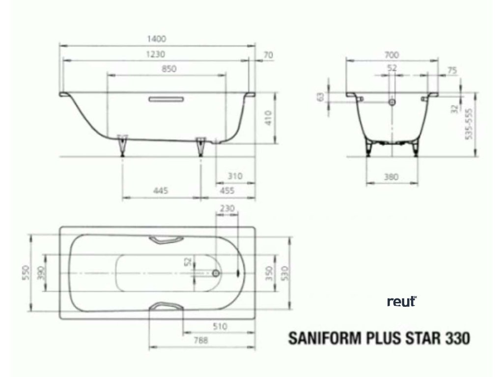 Kaldewei  Vaňa Saniform Plus Star 330, 140x70 cm, s otvormi na držadlá, celoplošný antislip, Perl-Effekt, biela 133034013001