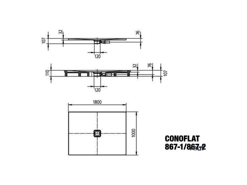 Kaldewei Avantgarde Obdĺžniková sprchová vanička Conoflat 867-2, 1000 mm x 1800 mm, biela – sprchová vanička, Perl-Effekt, polystyrénový nosič 468448043001