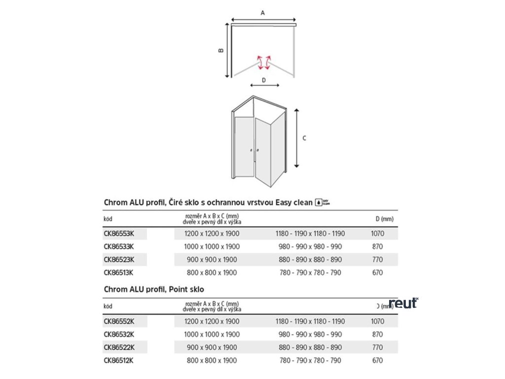 | Category: | Sprchové kúty štvorcové, dvere otváracie s bočnou stenou |