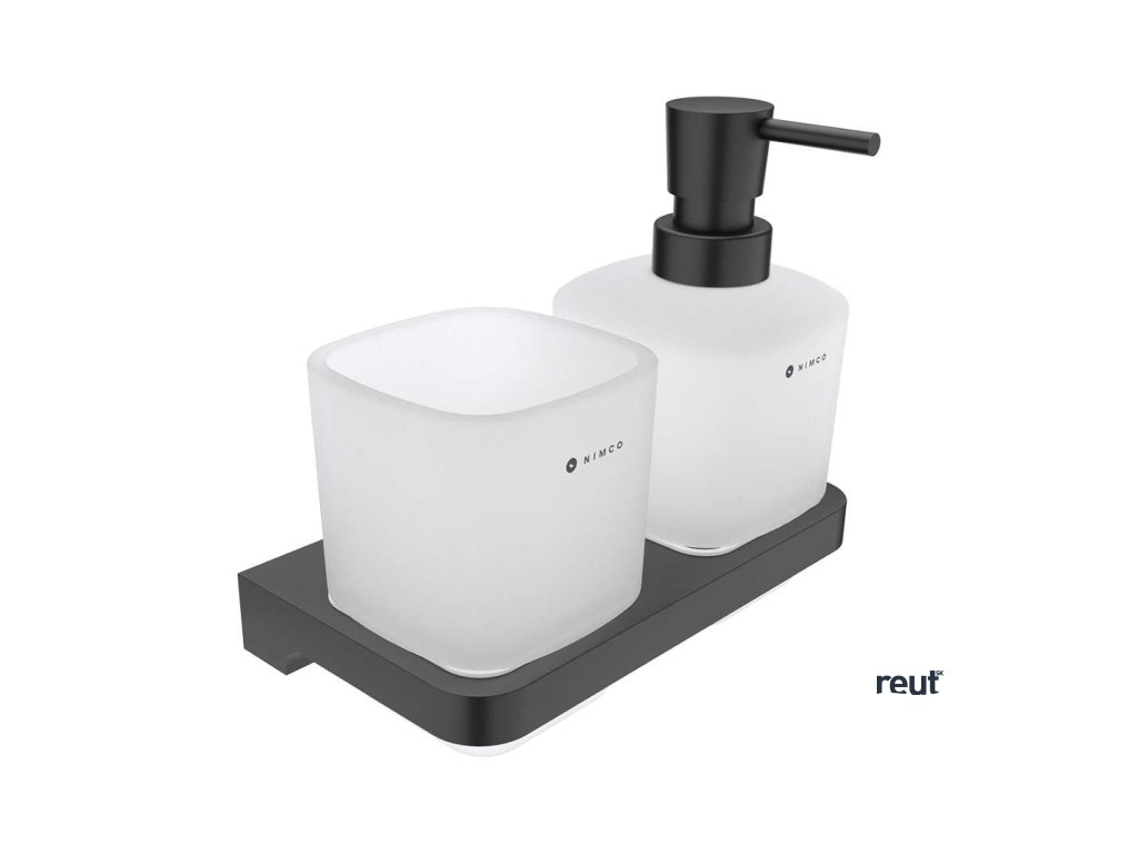 Nimco Maya Dávkovač mydla a pohárik s držiakom, matné sklo/čierna MAC 2905831C-T-90