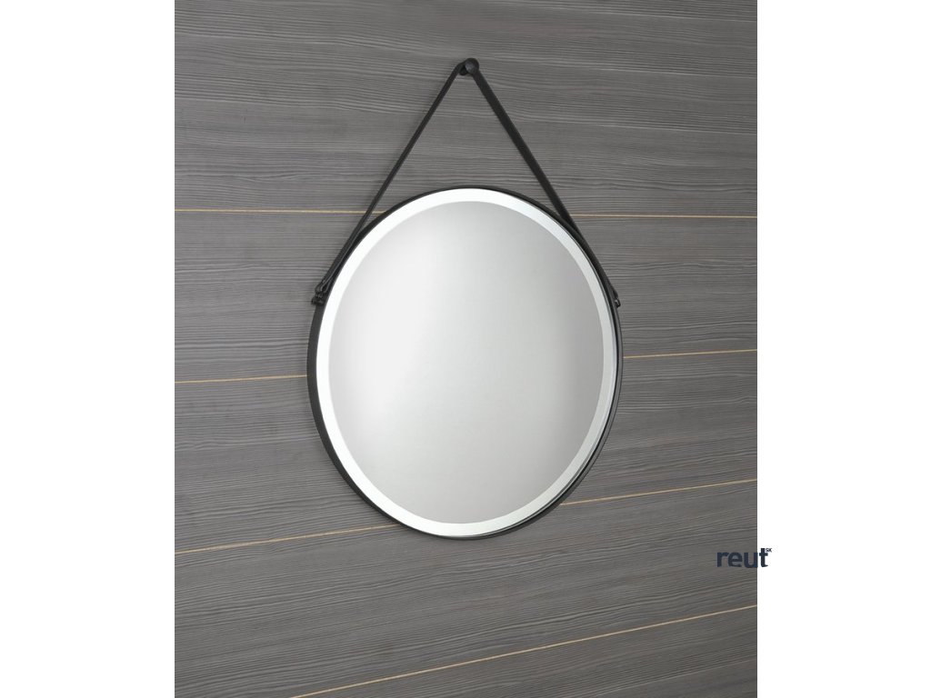Sapho ORBITER guľaté zrkadlo s LED osvetlením, kožený popruh, ø 70cm, čierna mat ORL070