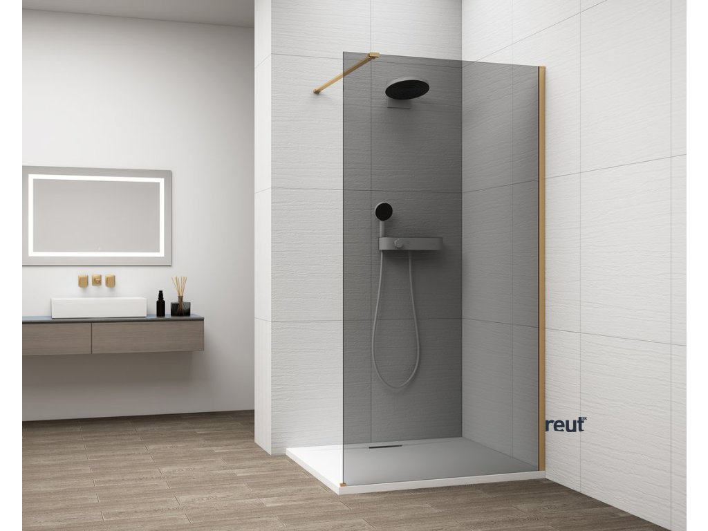 Polysan ESCA GOLD MATT jednodielna sprchová zástena na inštaláciu k stene, dymové sklo, 1000 mm ES1210-04