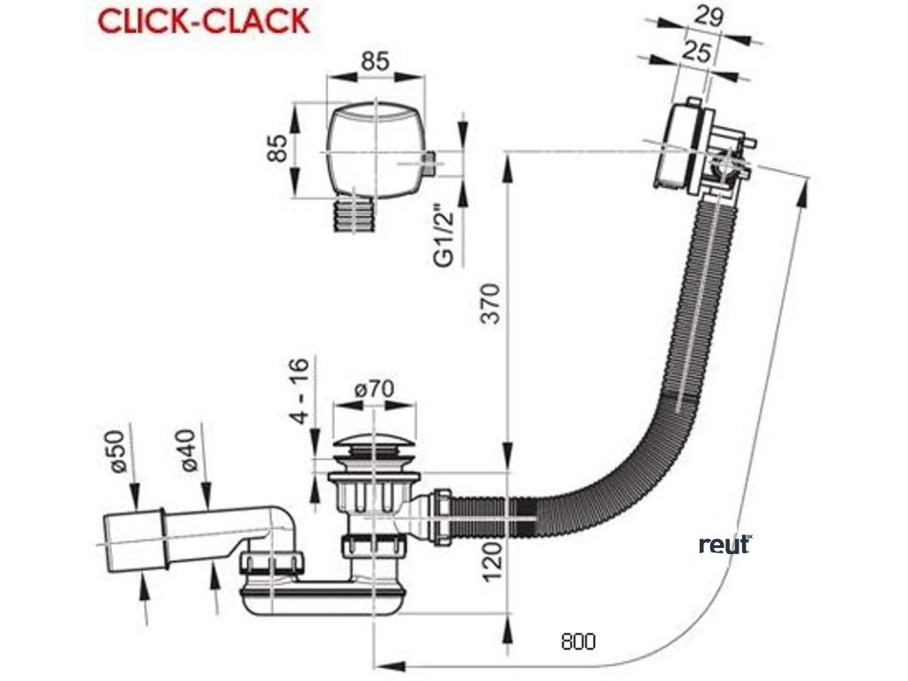 Ravak Odtokové systémy Vaňový odtokový komplet 800 s napúšťaním prepadom II ClickClack, chróm X01505
