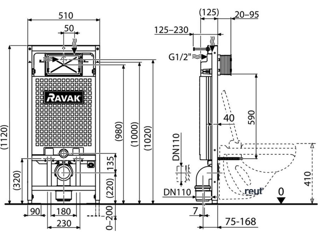 Ravak Príslušenstvo k WC Predstenová inštalácia G II/1120 na závesné WC X01703