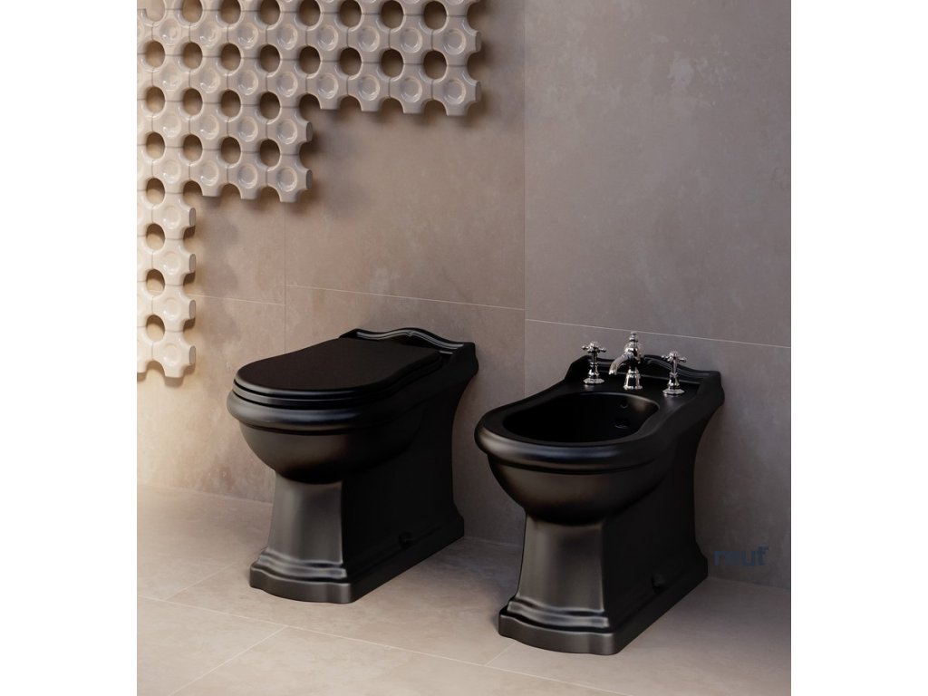RETRO KERASAN RETRO WC kombi, zadný odpad, čierna-chrom WCSET35-RETRO-ZO