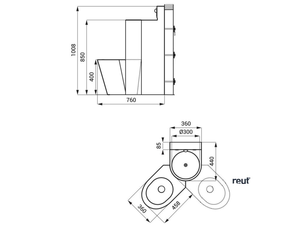 Sanela WC z nehrdzavejúcej ocele WC s umývadlom do rohu, WC na zemi vľavo, závitové tyče SLWN 08L