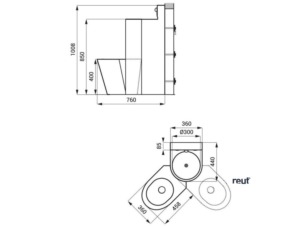 Sanela WC z nehrdzavejúcej ocele WC s umývadlom do rohu, WC na zemi vpravo, závitové tyče SLWN 08P