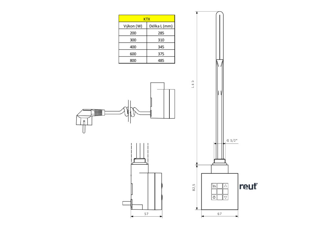 Sapho KTX vykurovacia tyč s termostatom, 300 W, chróm KTX-C-300