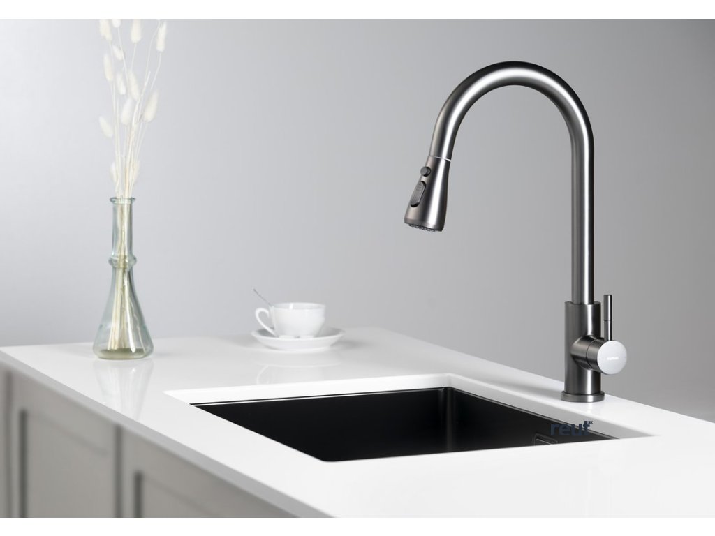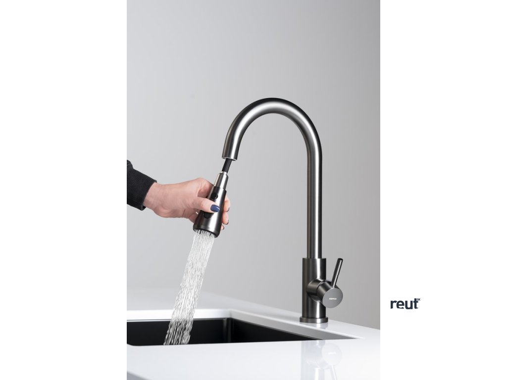 Sapho MIKELA stojánkova drezová batéria s výsuvnou sprškou, gun metal 1106-30GM