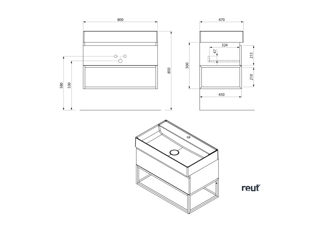 Sapho SKARA umývadlová skrinka 80x50x45cm, čierna mat/dub alabama CG008-2222