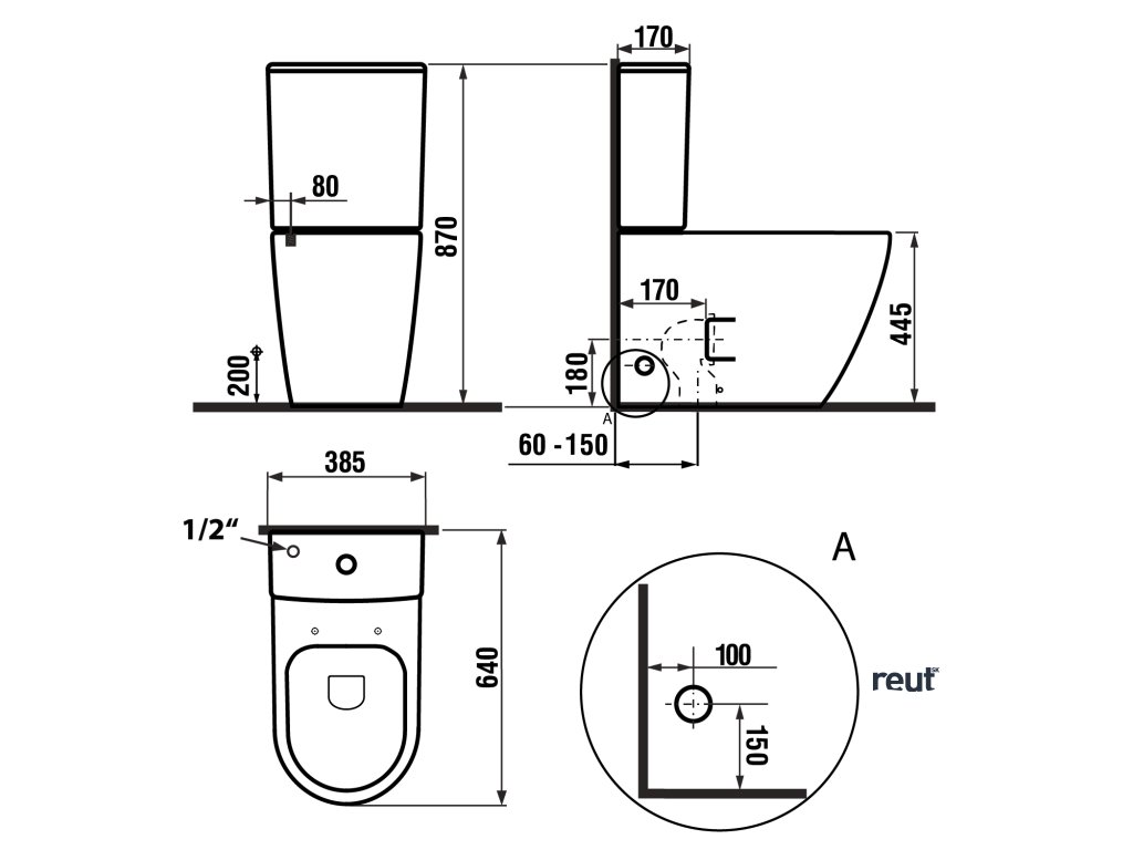 Sapho TURKU WC kombi, zvýšené sedenie, Rimless, spodný/zadný odpad, biela PC104WR
