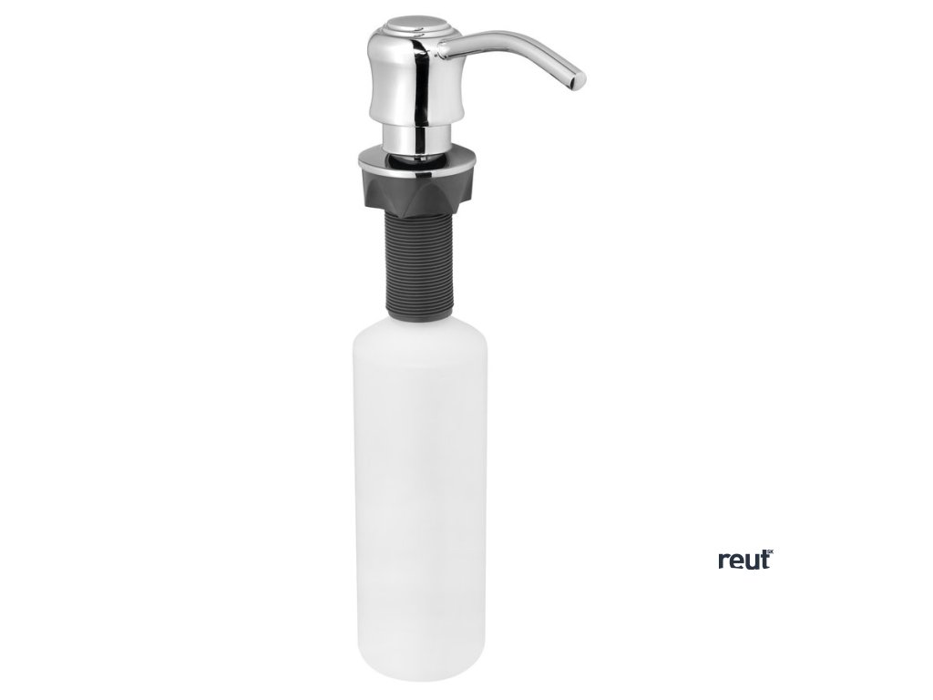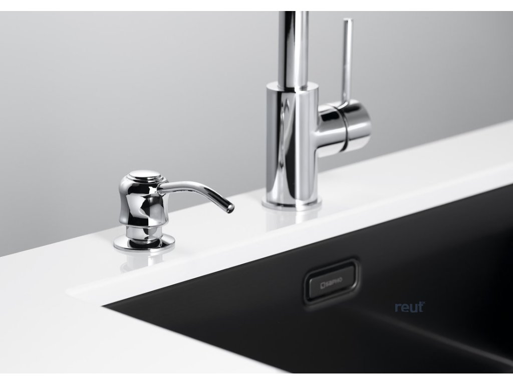 Zápustný dávkovač mydla a saponátu s možnosťou inštalácie do umývadla namiesto stojančekovej batérie, alebo do dosky vedľa umývadla či drezu.