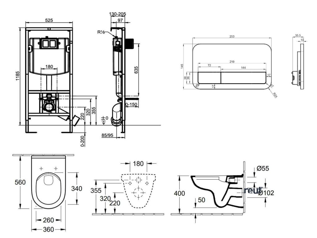Villeroy & Boch O.novo Set predstenovej inštalácie ViConnect, klozetu a sedadla, DirectFlush, SoftClosing, a tlačidla E200, biela 5660D301