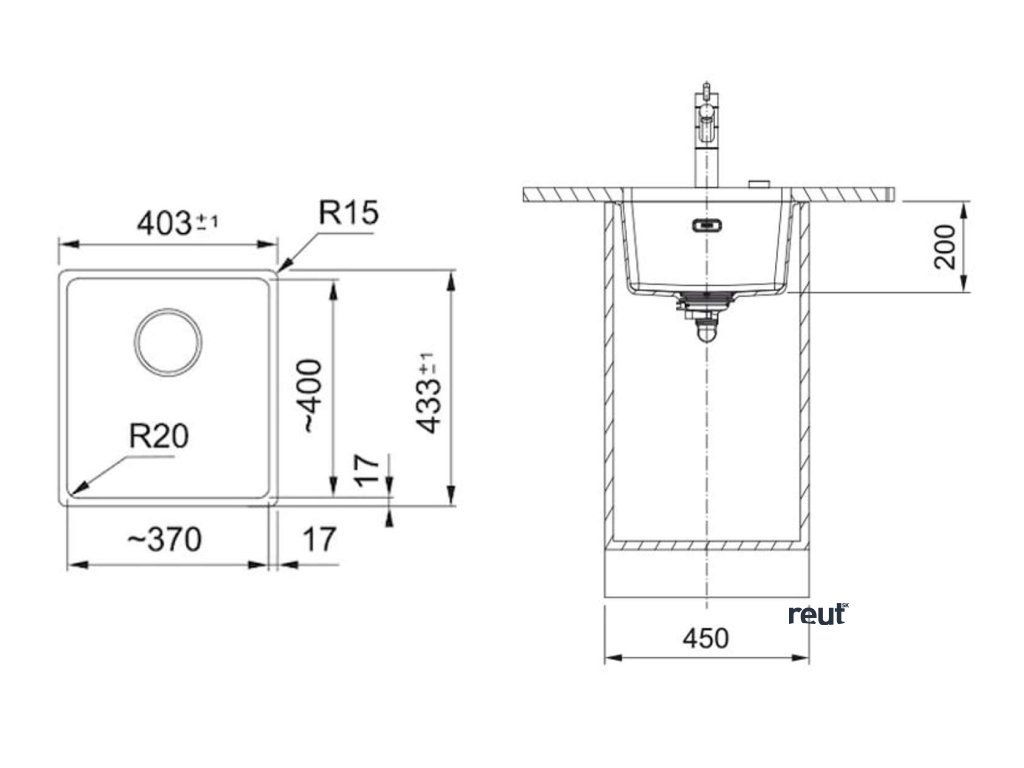 - drez 370 x 400 x 200 mm (rádius 15 mm)