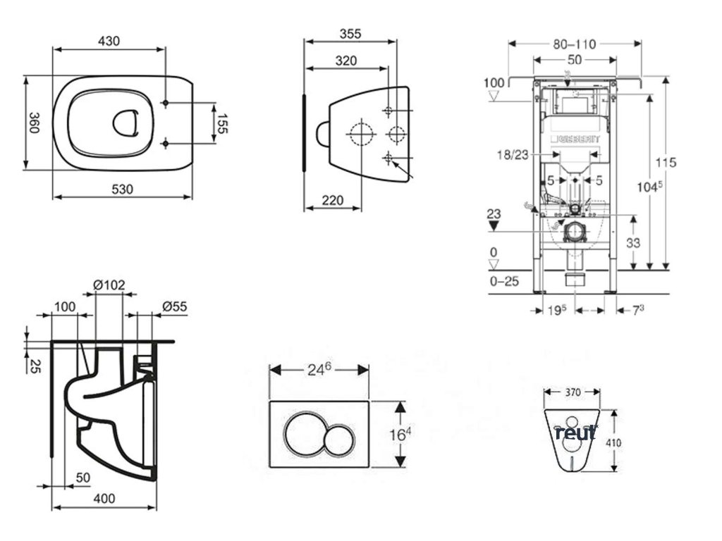 - Rám pre závesné WC s pripojovacími rozmermi podľa EN 33 a vyložením až 70 cm