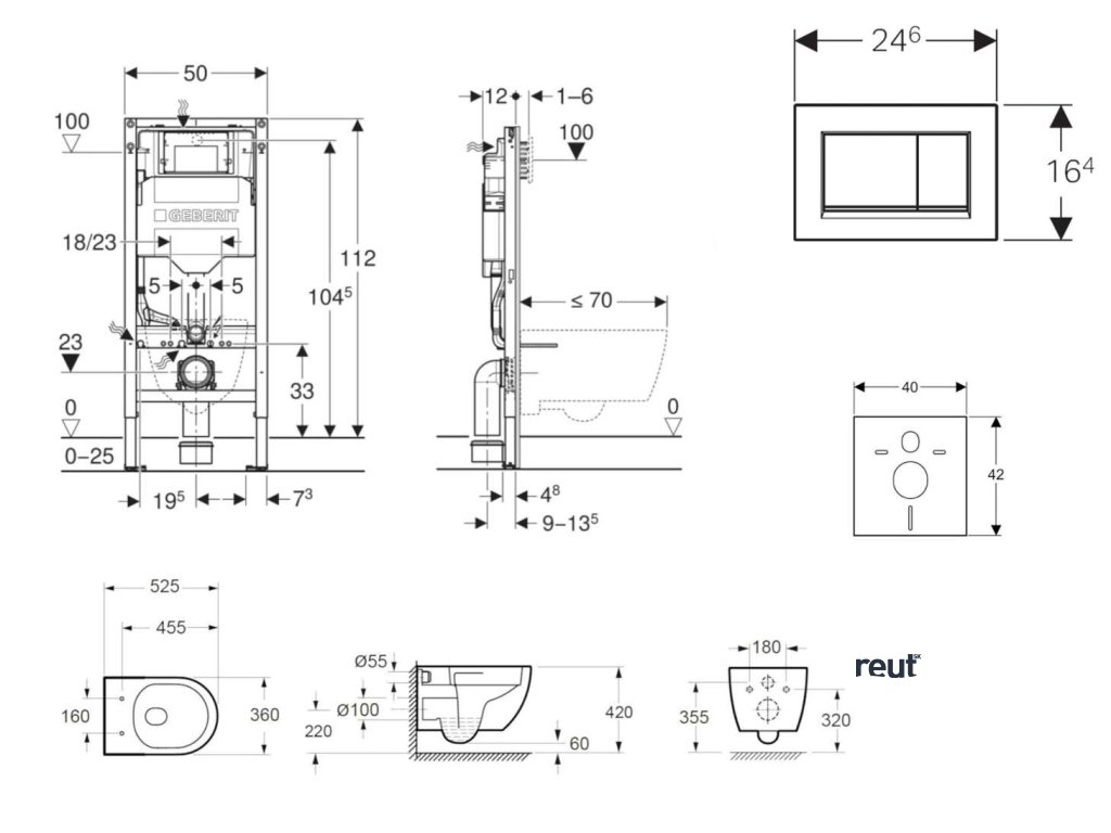 - pre závesné WC s pripojovacími rozmermi podľa EN 33 a presahom do 70 cm