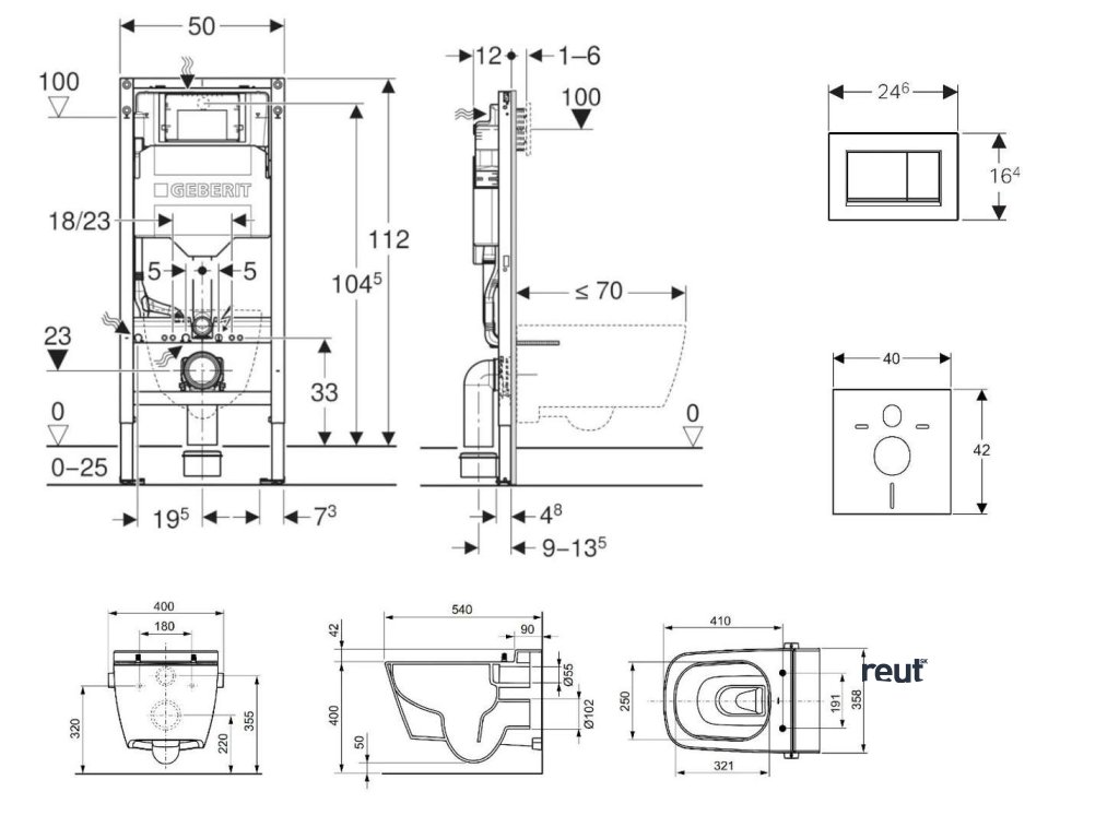 - pre závesné WC s pripojovacími rozmermi podľa EN 33 a presahom do 70 cm