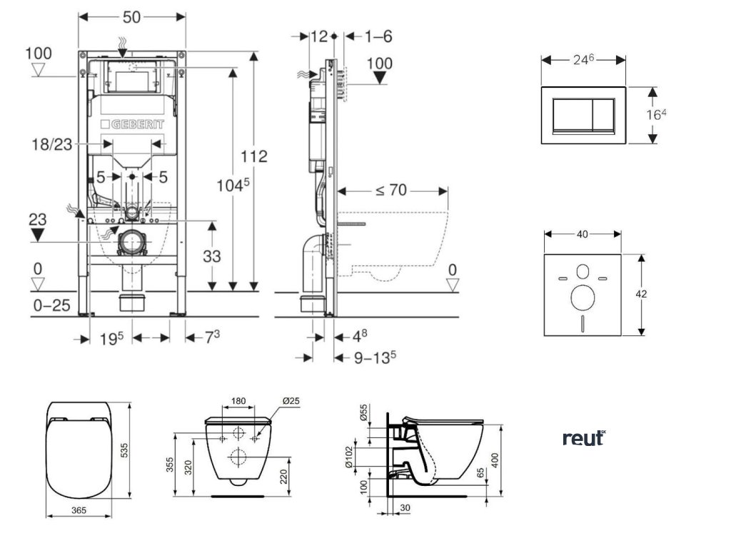 - predstenový inštalačný prvok Geberit Duofix (111.300.00.6), so splachovacou nádržkou pod omietku Sigma 12 cm