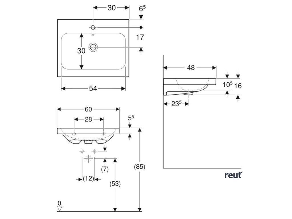 Geberit iCon Umývadlo, 60x48x16 cm, s prepadom, s otvorom na batériu, biela 501.834.00.1