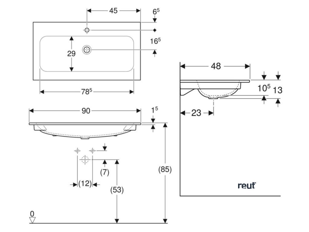 Geberit iCon Umývadlo nábytkové, 90x48x13 cm, bez prepadu, s otvorom na batériu, biela 501.845.00.1
