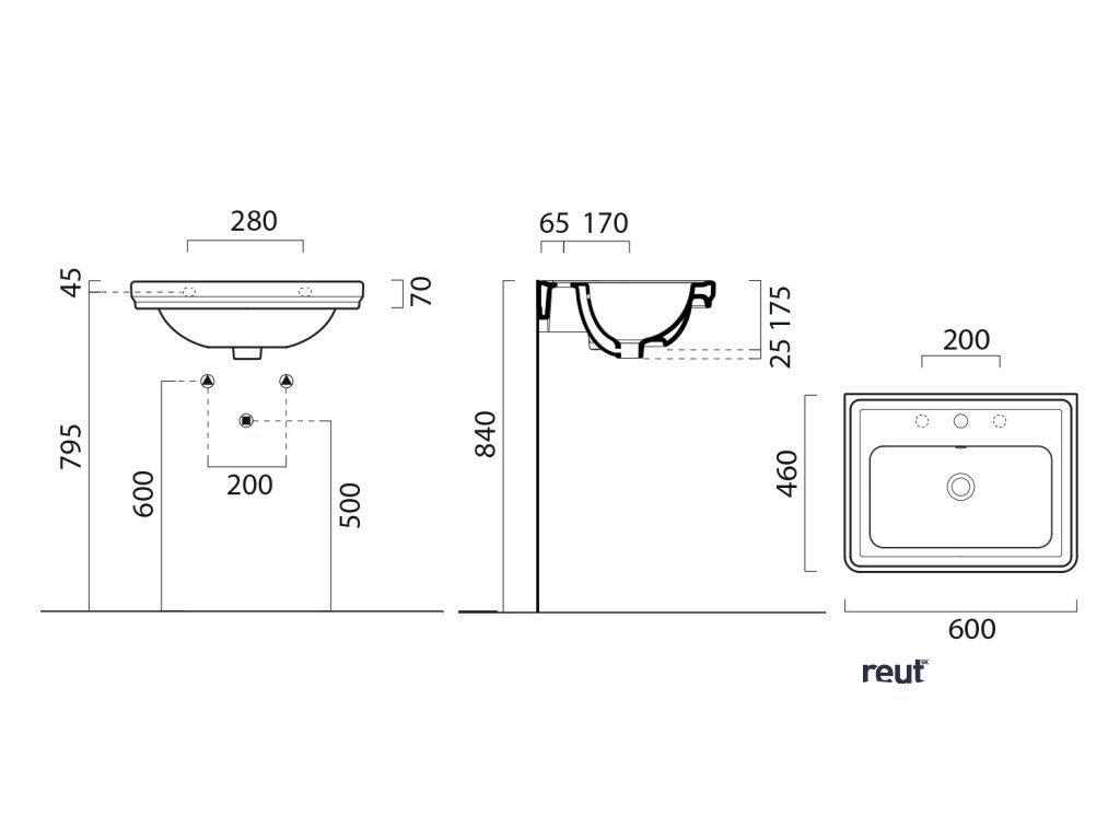 GSI CLASSIC keramické umývadlo 60x46cm, 3 otvory, biela ExtraGlaze 8731311