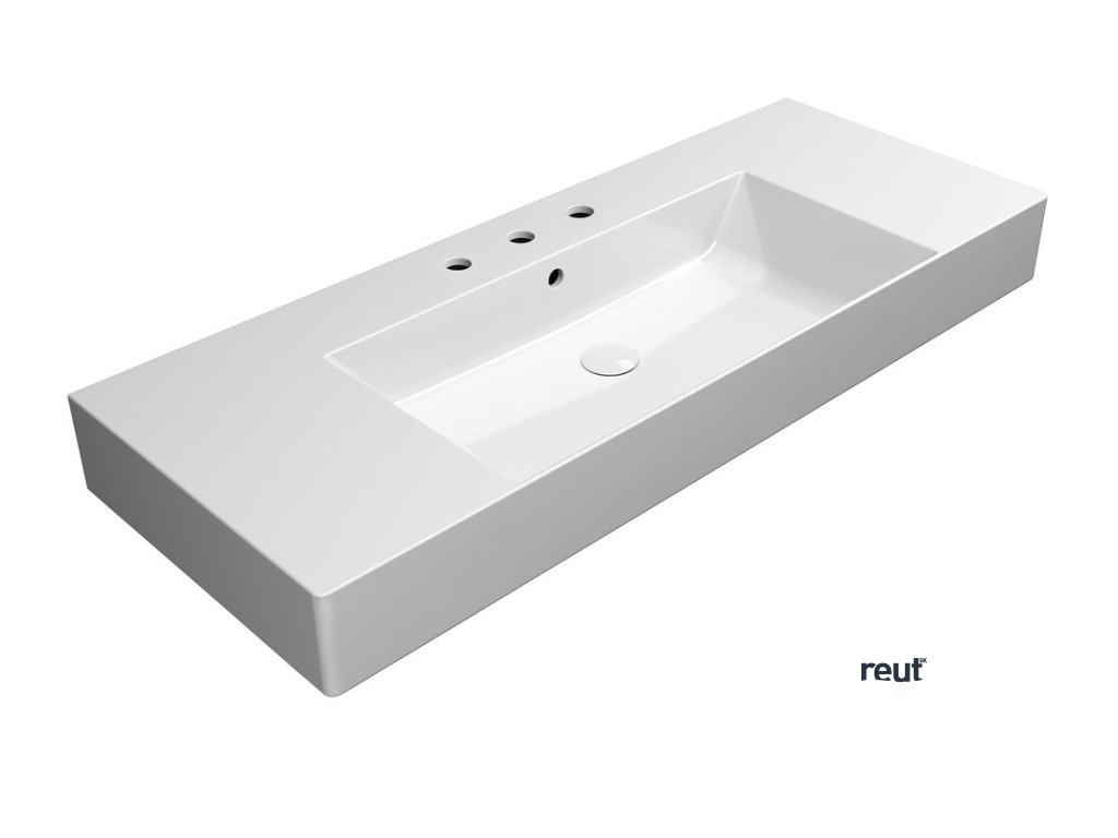 GSI KUBE X keramické umývadlo 120x47cm, s odkladacími plochami, brúsená spodná hrana, 3 otvory, biela ExtraGlaze 94529311