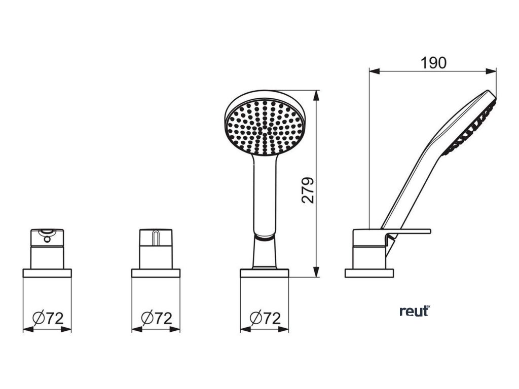 - montáž: na základné teleso na vaňové batérie s 3-otvorovou inštaláciou