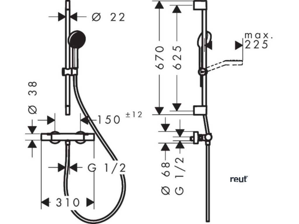 Sprchový systém 95 2jet EcoSmart, s termostatom Ecostat Fine a sprchovou tyčou 65 cm
