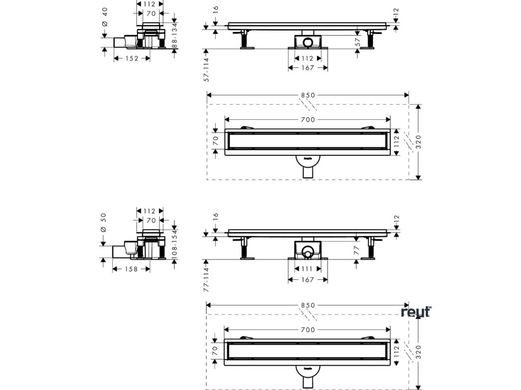 Úplná súprava sprchového žľabu 700, na štandardnú/plochú inštaláciu
