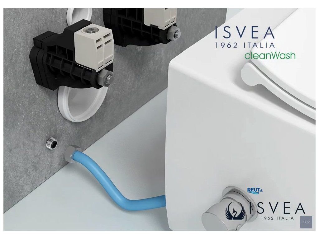 Isvea SENTIMENTI CLEANWASH závesná WC misa, integrovaný ventil a bidetová spŕška, Rimless, 36x51cm, biela 10ARS1010