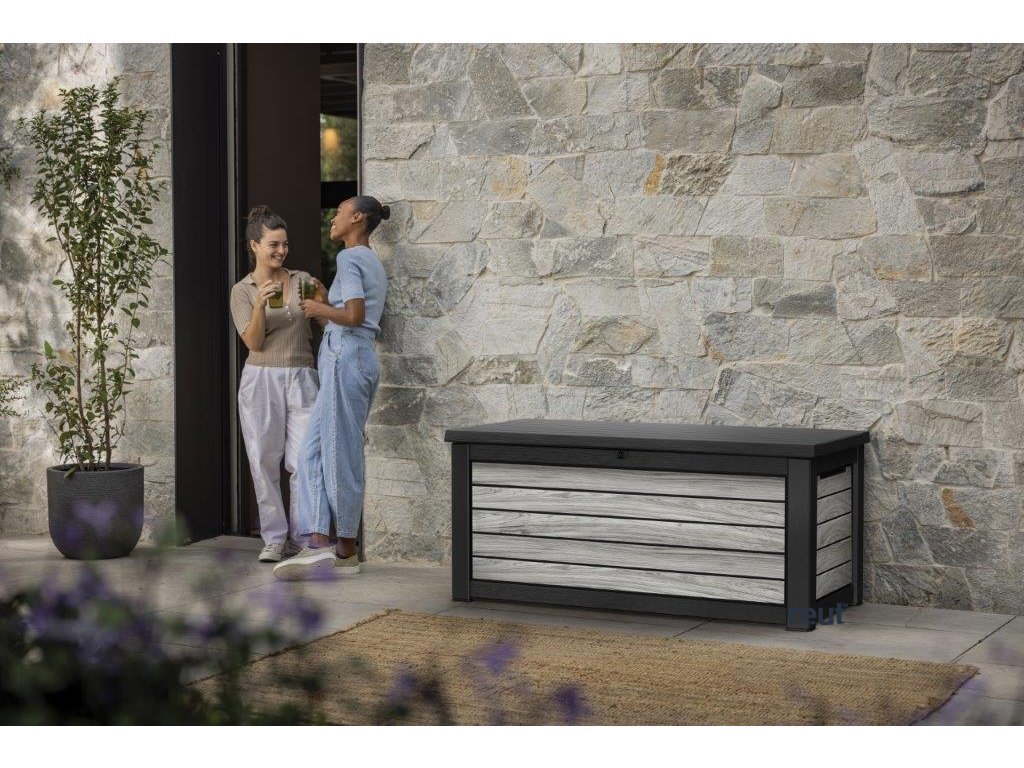 Box je vyrobený z odolného plastu s DECOCOAT technológiou, ktorá zaručuje dlhú životnosť a vzhľad prírodného dreva. Materiál nehrdzavie, nelúpe sa a nehnije, takže box si nevyžaduje žiadnu údržbu. Vďaka jednotnému dizajnu sa skvele hodí k ďalším prvkom Keter v odtieni storm grey – napríklad k domčekom alebo skrinkám na odpadky.