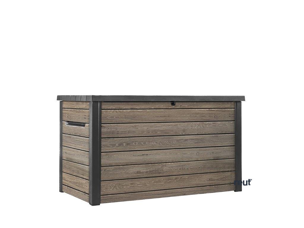 Nájdite pre box ideálne miesto. Vďaka štruktúre, ktorá pripomína drevo, zapadne takmer do každého prostredia. Aby ste uložené predmety uchovali v bezpečí, dá sa box uzamknúť pomocou visiaceho zámku (nie je súčasťou balenia). Hydraulický piestový systém zaistí plynulé a bezpečné zatváranie a otváranie veka. Po zatvorení sa naň navyše usadia až 2 ľudia.