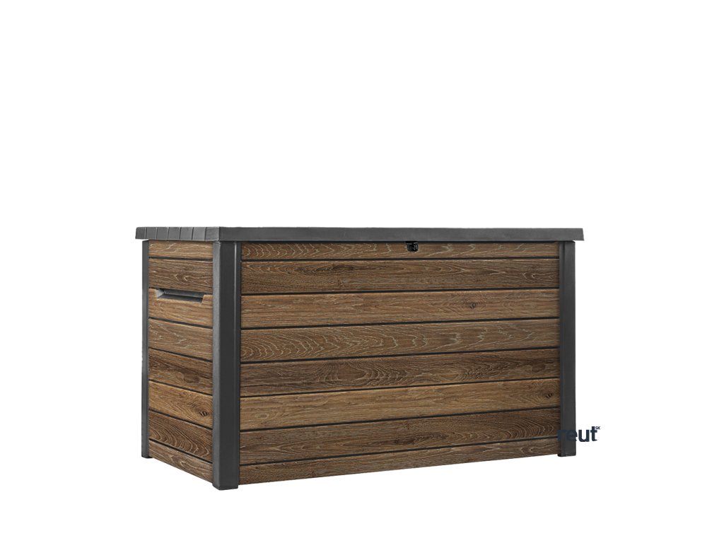 Nájdite pre box ideálne miesto. Vďaka štruktúre, ktorá pripomína drevo, zapadne takmer do každého prostredia. Aby ste uložené predmety uchovali v bezpečí, dá sa box uzamknúť pomocou visiaceho zámku (nie je súčasťou balenia). Hydraulický piestový systém zaistí plynulé a bezpečné zatváranie a otváranie veka. Po zatvorení sa naň navyše usadia až 2 ľudia.