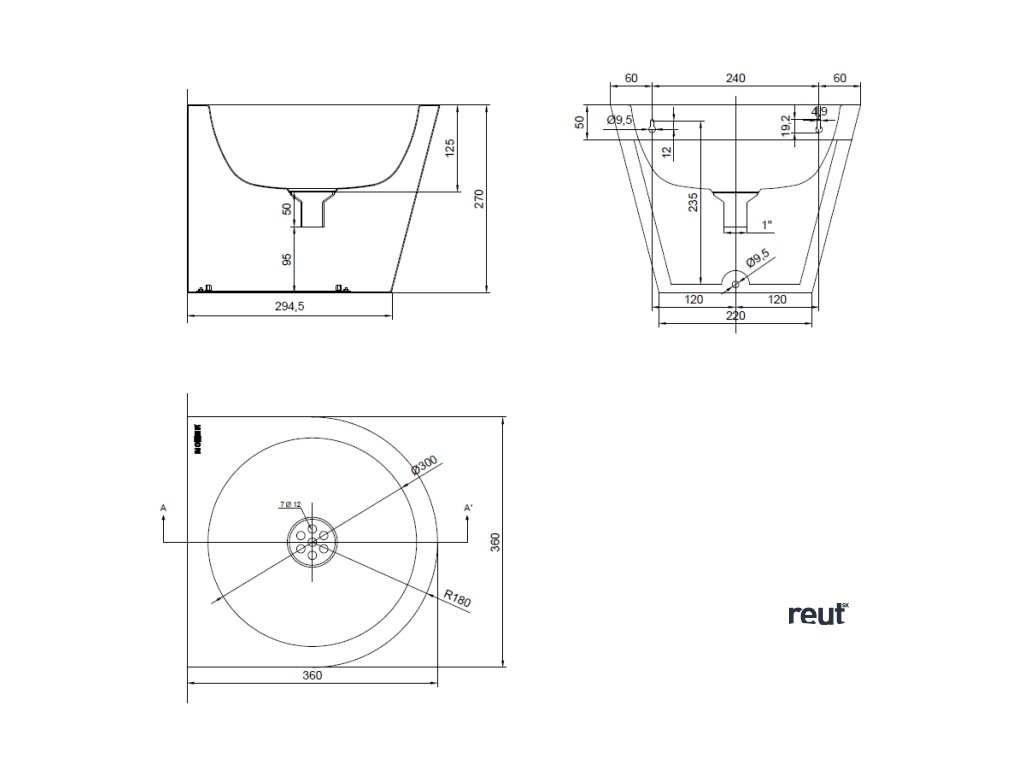 NOFER Závesné umývadlo bez otvoru pre batériu 360x270x360 mm, nerez mat 13036.C.S